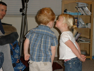Our friends Justin and Melissa came over for a little Super Bowl party and Carson made a new best friend. Their little girl Violet is so darn cute. This was the kiss that sealed the deal for him.